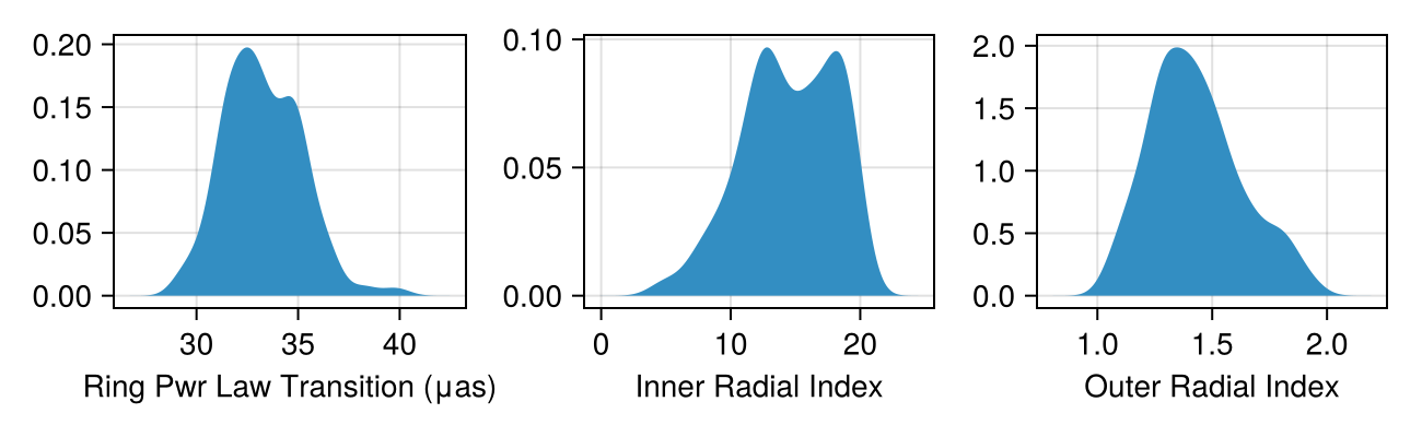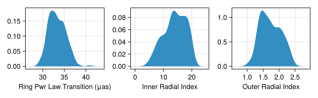 p1 = density(figd[1, 1], rad2μas(chain.sky.r) * 2, axis = (xlabel = "Ring Pwr Law Transition (μas)",))