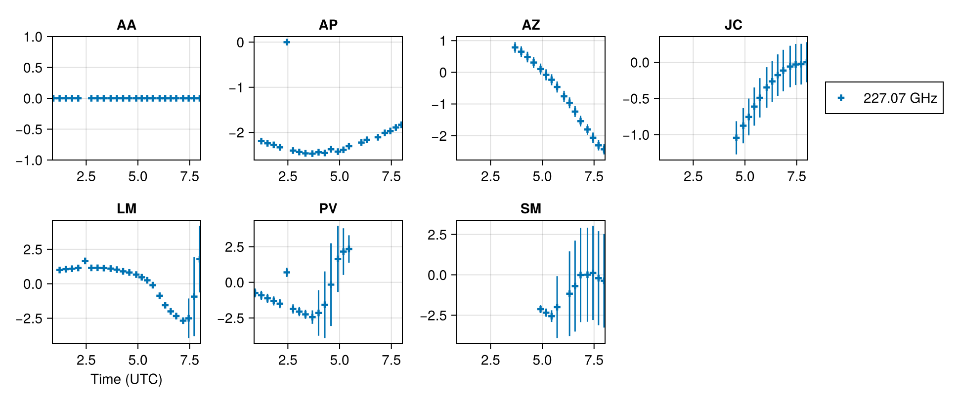 5.18 hr │ 227.070703125 GHz │ 0.0±0.0 -2.385±0.019 -0.08±0.17 -0.76±0.26 0.47±0.16 2.2±1.6 -2.34±0.26