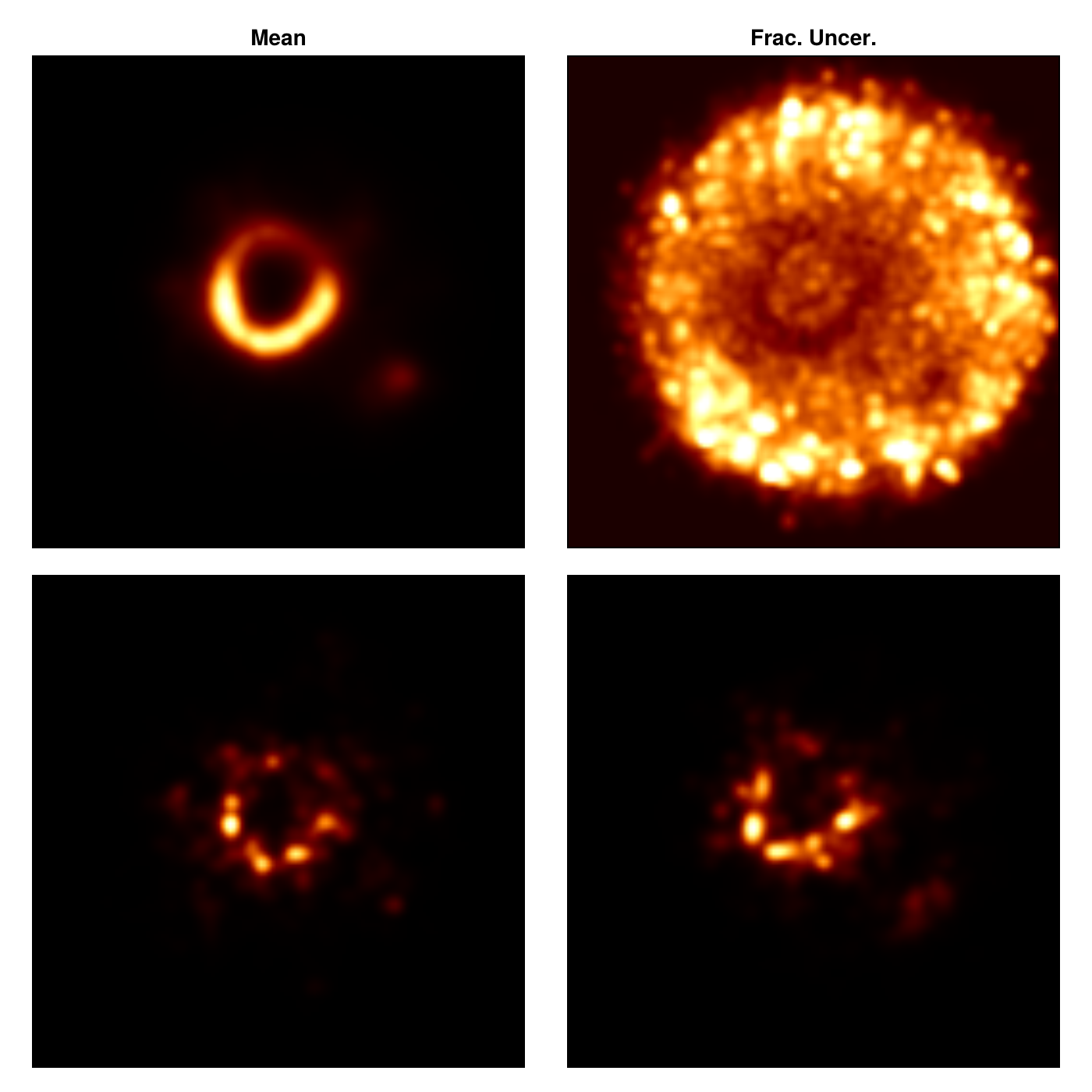 image!(axs[1, 2], simg ./ (max.(mimg, 1.0e-8)), colorrange = (0.0, 2.0), colormap = :afmhot);axs[1, 2].title = "Frac. Uncer."