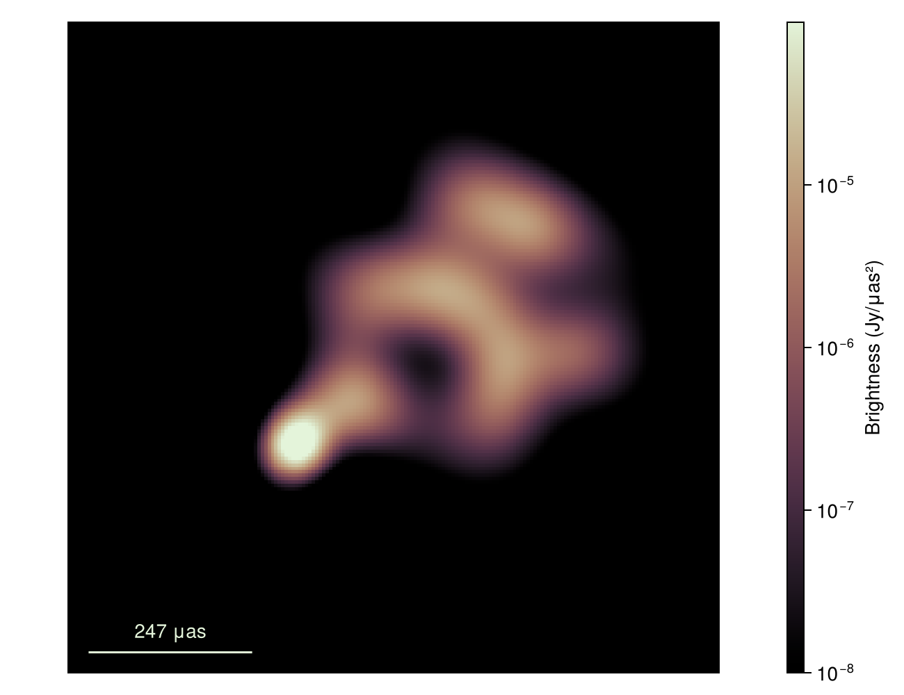 figIn summary, we have demonstrated how to use Comrade to reconstruct VLBA data of an AGN using only closure quantities. Additionally, we have shown how to use a Markov Random Field expansion to model the power spectrum of the AGN. This allows us to model more complex structures in the AGN jet and infer the power spectrum directly from the data.
