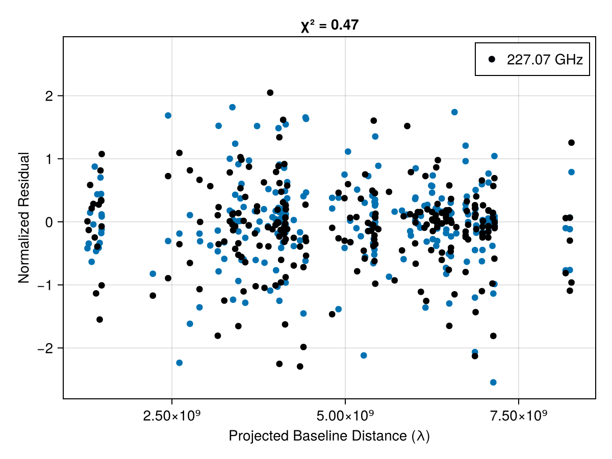 ax, = plotfields!(fig[1, 1], resch[1], :uvdist, :res, scatter_kwargs = (; label = "MAP", color = :blue, colorim = :red, marker = :circle), legend = false)