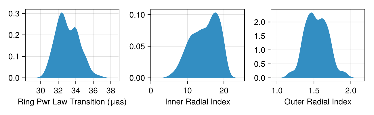p1 = density(figd[1, 1], rad2μas(chain.sky.r) * 2, axis = (xlabel = "Ring Pwr Law Transition (μas)",))
