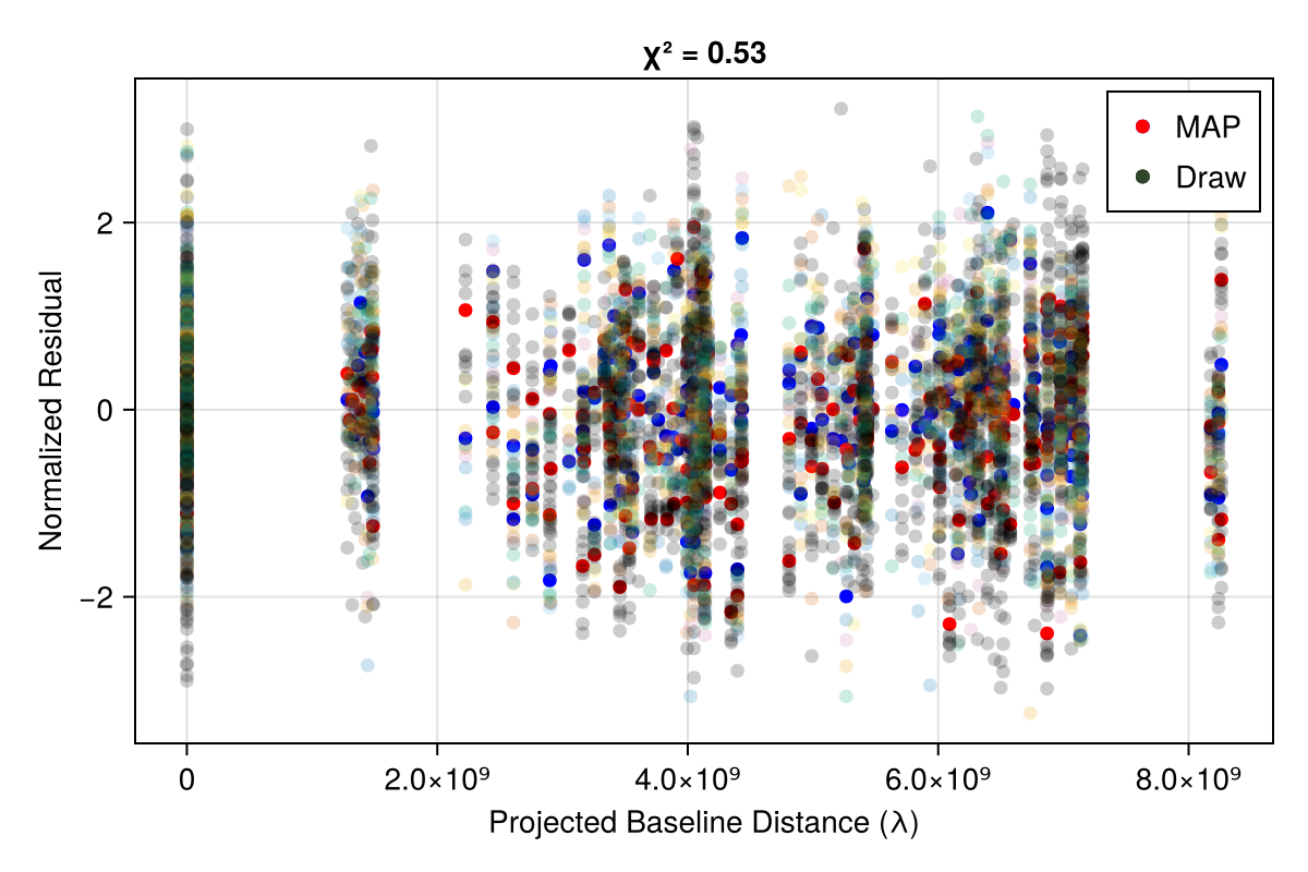 ax, = plotfields!(fig[1, 1], res[1], :uvdist, :res, scatter_kwargs = (; label = "MAP", color = :blue, colorim = :red, marker = :circle), legend = false)