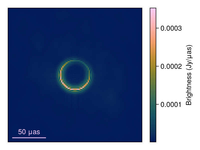msamples = skymodel.(Ref(post), chain[begin:2:end]);WARNING: using StatsBase.residuals in module ##225 conflicts with an existing identifier.The mean image is then given by