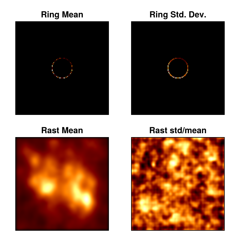 image!(axes[1,2], ring_std, colormap=:afmhot); axes[1,2].title = "Ring Std. Dev."